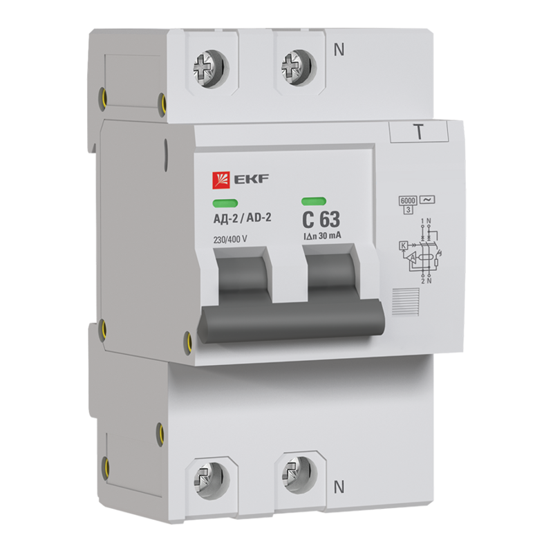 Дифференциальный автоматический выключатель АД-2(4) (S) EKF PROxima представляет собой аппарат, сочетающий функции автоматического выключателя с устройством защитного отключения. При обнаружении автоматическим выключателем в защищаемом участке сети тока утечки (повреждения) на землю или сверхтока (тока перегрузки или короткого замыкания) происходит срабатывание устройства, приводящее к отключению защищаемой сети. Особое отличие дифференциальных автоматов EKF – в наличии встроенного блока защиты от перенапряжения. АД-2 и АД-4 EKF PROxima выпускаются в стандартном и селективном (АД-2S, АД-4S) исполнениях.