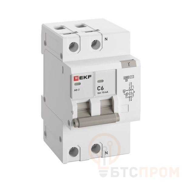 Выключатель автоматический дифференциального тока C 6А 10мА тип AC 6кА АД-2 (электрон.) PROxima EKF DA2-6-06-10-pro