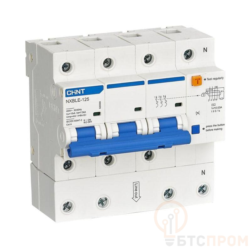 Выключатель автоматический дифференциального тока C 80А 30мА тип AC 10кА NXBLE-125 3P+N электронный (R) CHINT 820586