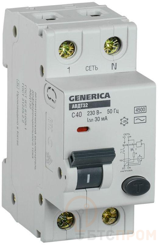–Выключатель автоматический дифференциального тока C40 30мА АВДТ 32 GENERICA MAD25-5-040-C-30