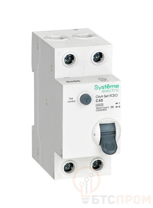 Автоматические выключатели дифференциального тока (АВДТ) серии City9 Set Systeme Electric,1P+N, номинальный ток 40 А, характеристика С, Icn = 6 кА, ток утечки 30 мА, тип А. АВДТ применяется в электрических сетях напряжением 230В. Предназначен для защиты сети от перегрузок, людей от поражения электрическим током и токов короткого замыкания. Уставка по току утечки 30 мА обеспечивает гарантированную защиту людей при прямом прикосновении. Кнопка тест обеспечивает проверку работоспособности аппарата. Крепление на DIN-рейку шириной 35 мм. Безопасные клеммы.