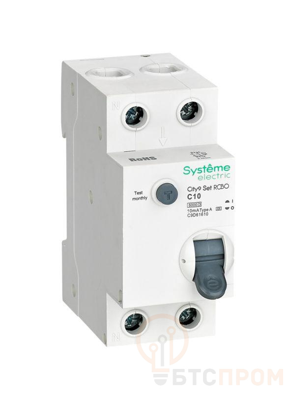 Автоматические выключатели дифференциального тока (АВДТ) серии City9 Set Systeme Electric,1P+N, номинальный ток 10 А, характеристика С, Icn = 6 кА, ток утечки 10 мА, тип А. АВДТ применяется в электрических сетях напряжением 230В. Предназначен для защиты сети от перегрузок, людей от поражения электрическим током и токов короткого замыкания. Уставка по току утечки 10 мА обеспечивает гарантированную защиту людей при прямом прикосновении. Кнопка тест обеспечивает проверку работоспособности аппарата. Крепление на DIN-рейку шириной 35 мм. Безопасные клеммы.