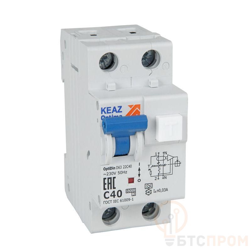 Выключатель автоматический дифференциального тока с защитой от сверхтоков 2п C 10А 30мА OptiDin D63-22C10-A-У3 6кА КЭАЗ 333141