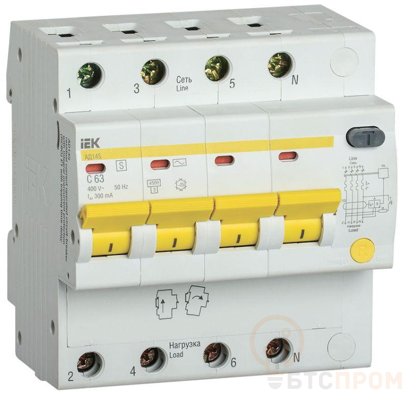 Выключатель автоматический дифференциального тока селективный 4п 63А 300мА тип AC АД14S KARAT IEK MAD13-4-063-C-300
