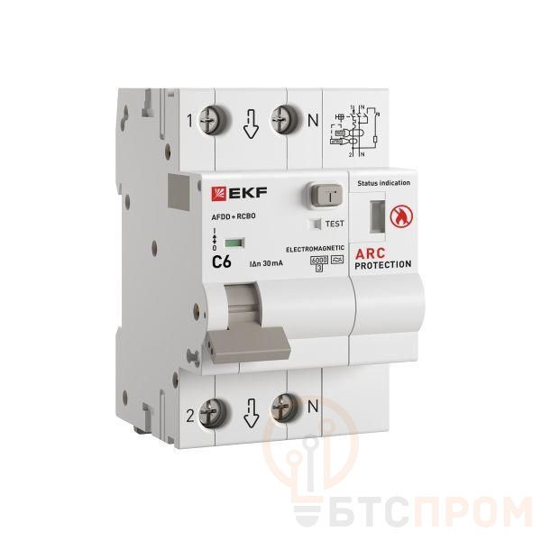 Устройство защиты от дугового пробоя с автоматическим выключателем дифференциального тока (УЗДП + АВДТ) 1P+N С 6А 30мА тип А 6кА PROxima EKF afdd-rcbo-2-6C-30em-pro