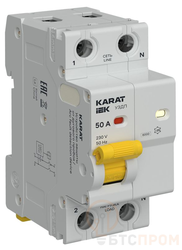 Устройство защиты от дугового пробоя (УЗДП) 1P+N 50А KARAT IEK KA-DP10-1-050 фото в каталоге от BTSprom.by