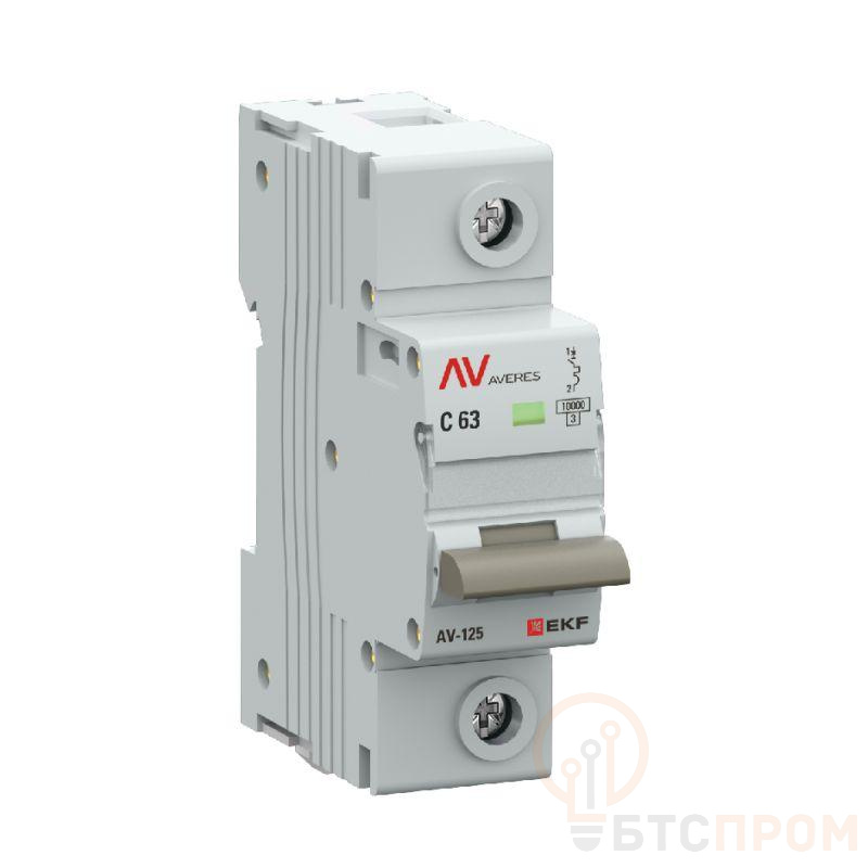 Выключатель автоматический 1п D 63А 10кА AV-125 AVERES EKF mcb125-1-63D-av фото в каталоге от BTSprom.by
