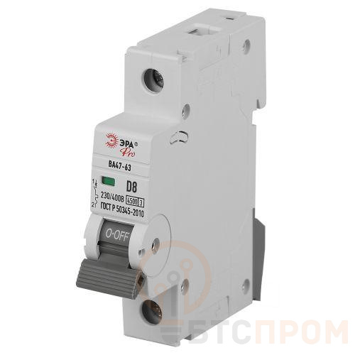 –Выключатель автоматический 1п D 8А 4.5кА ВА47-63 PRO ЭРА Б0059451