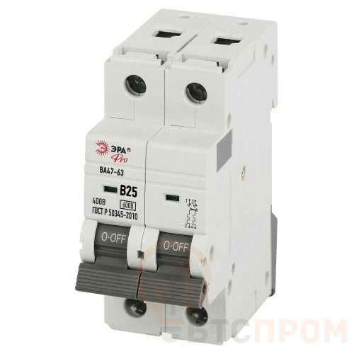 –Выключатель автоматический 2п B 25А 6кА ВА47-63 PRO VA63-2P25B6 Эра Б0063113