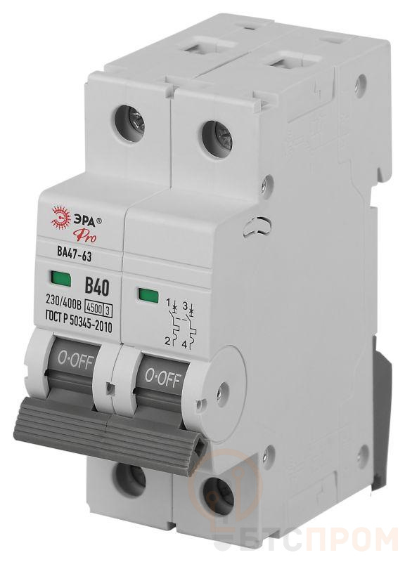 –Выключатель автоматический 2п B 40А 4.5кА ВА47-63 PRO ЭРА Б0059383