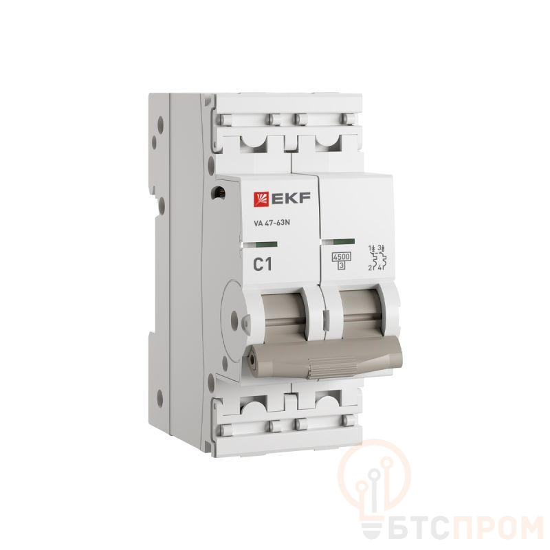 Выключатель автоматический 2п C 1А 4.5кА ВА 47-63N PROxima EKF M634201C фото в каталоге от BTSprom.by