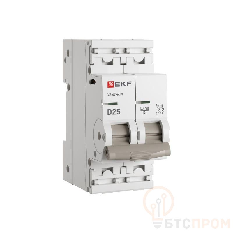 Выключатель автоматический 2п D 25А 4.5кА ВА 47-63N PROxima EKF M634225D фото в каталоге от BTSprom.by