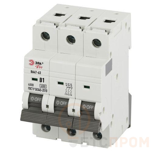 –Выключатель автоматический 3п B 1А 6кА ВА47-63 PRO VA63-3P01B6 Эра Б0063105