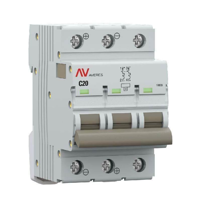 –Выключатель автоматический 3п C 20А 10кА AV-10 DC AVERES EKF mcb10-DC-3-20C-av