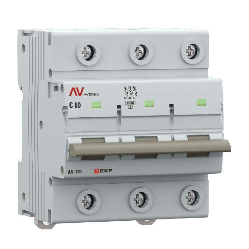 –Выключатель автоматический 3п C 80А 10кА AV-125 AVERES EKF mcb125-3-80C-av
