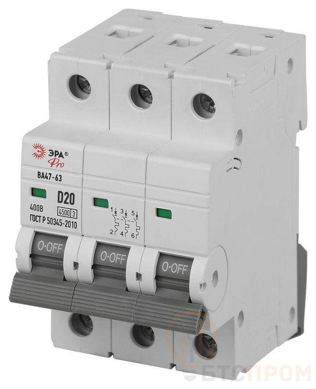 –Выключатель автоматический 3п D 20А 4.5кА ВА47-63 PRO ЭРА Б0059478