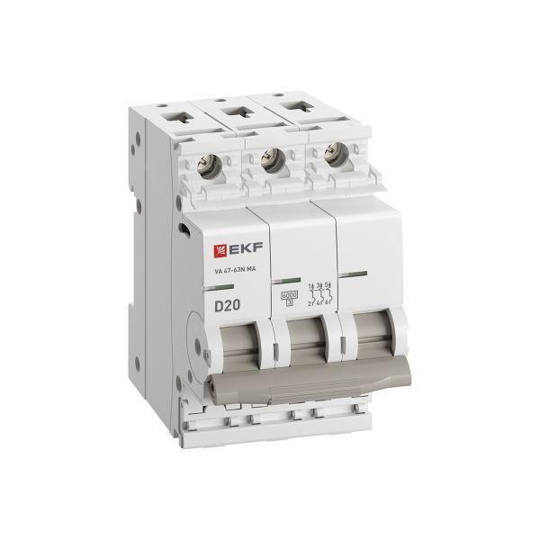 –Выключатель автоматический 3п D 20А 6кА ВА 47-63N MA без теплового расцеп. PROxima EKF M63MA6320D