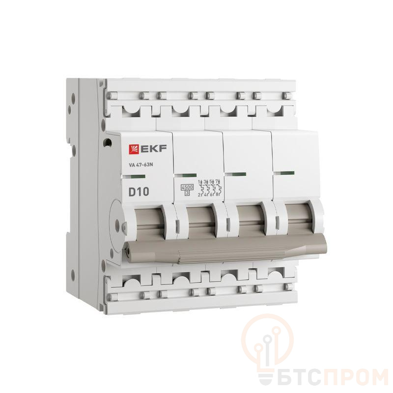 Выключатель автоматический 4п D 10А 4.5кА ВА 47-63N PROxima EKF M634410D фото в каталоге от BTSprom.by