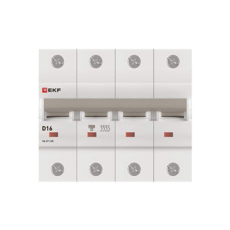 Выключатель автоматический 4п D 16А 15кА ВА 47-125 PROxima EKF mcb47125-4-16D