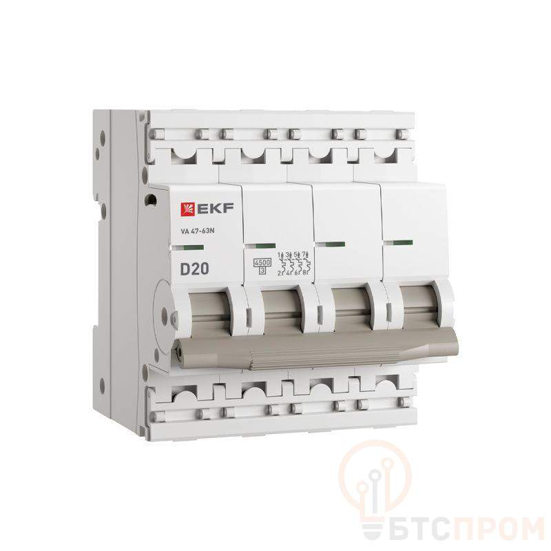 Выключатель автоматический 4п D 20А 4.5кА ВА 47-63N PROxima EKF M634420D фото в каталоге от BTSprom.by