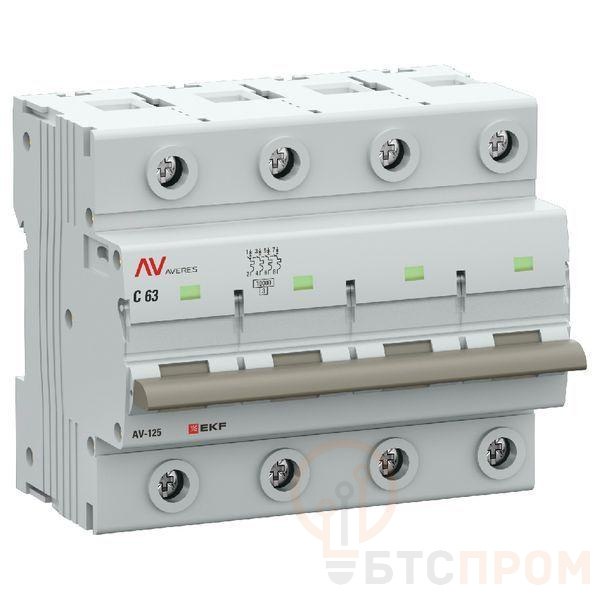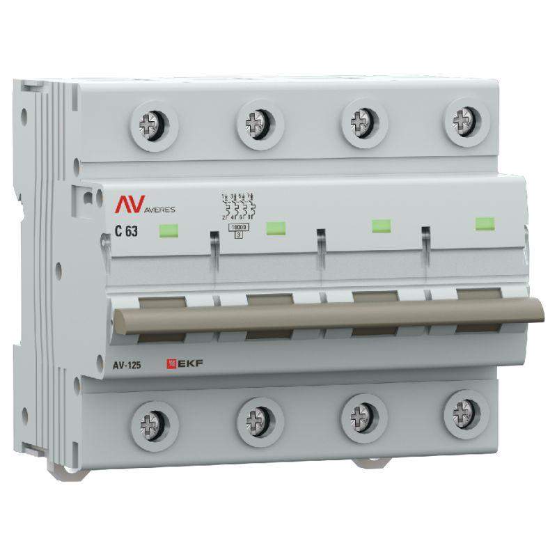 Выключатель автоматический 4п D 63А 10кА AV-125 AVERES EKF mcb125-4-63D-av фото в каталоге от BTSprom.by
