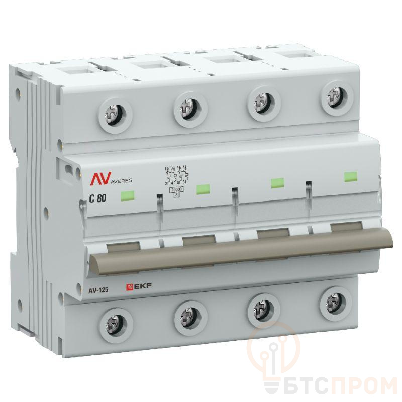 Выключатель автоматический 4п D 80А 10кА AV-125 AVERES EKF mcb125-4-80D-av фото в каталоге от BTSprom.by
