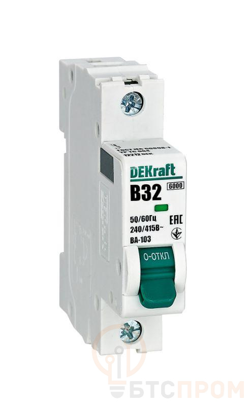 Автоматический выключатель серии ВА-103 NEW Dekraft; 1P; номинальный ток 32 А; характеристика B; отключающая способность 6 кА, что позволяет использовать аппараты в качестве вводных. 5 монолитных заклепок повышают прочность корпуса аппарата. Окошко-индикатор всегда показывает состояние контактов вне зависимости от положения рукоятки управления. Боковые каналы охлаждения повышают стабильность работы при высоких температурах окружающей среды. Есть возможность установки дополнительных аксессуаров с левой стороны устройства. Аппарат на 100% совместим с корпусами и оболочками Dekraft, Systeme Electric.