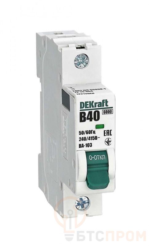 Автоматический выключатель серии ВА-103 NEW Dekraft; 1P; номинальный ток 40 А; характеристика B; отключающая способность 6 кА, что позволяет использовать аппараты в качестве вводных. 5 монолитных заклепок повышают прочность корпуса аппарата. Окошко-индикатор всегда показывает состояние контактов вне зависимости от положения рукоятки управления. Боковые каналы охлаждения повышают стабильность работы при высоких температурах окружающей среды. Есть возможность установки дополнительных аксессуаров с левой стороны устройства. Аппарат на 100% совместим с корпусами и оболочками Dekraft, Systeme Electric.