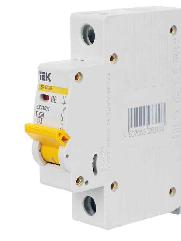 Выключатель автоматический модульный 1п B 6А 4.5кА ВА47-29 KARAT IEK MVA20-1-006-B фото в каталоге от BTSprom.by