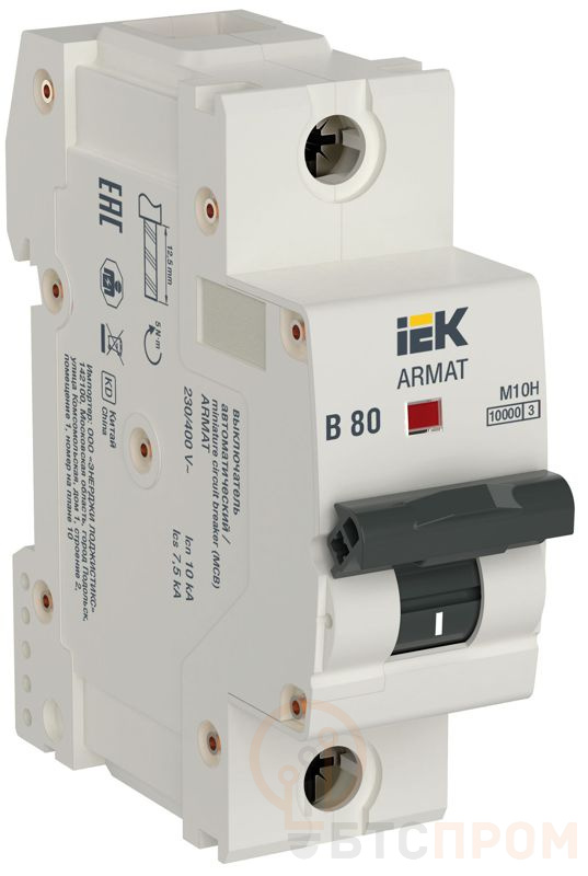 Выключатель автоматический модульный 1п B 80А M10H ARMAT IEK AR-M10H-1-B080 фото в каталоге от BTSprom.by