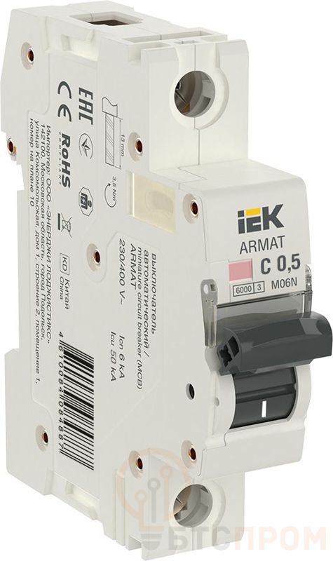 Автоматические выключатели ARMAT серии M06N предназначены для защиты цепей от перегрузки и короткого замыкания. Модельный ряд включает в себя устройства с характеристиками срабатывания B, C, D и номинальными токами от 0,5 до 63 А. Номинальная отключающая способность автоматических выключателей ARMAT серии M06N составляет 6 кА. Предельная отключающая способность варьируется в зависимости от номинала от 10 до 50 кА.