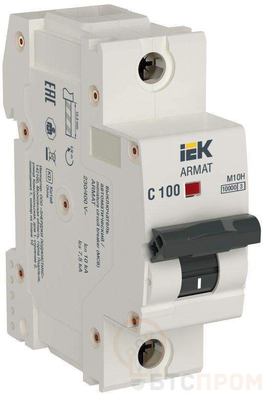 Выключатель автоматический модульный 1п C 100А M10H ARMAT IEK AR-M10H-1-C100 фото в каталоге от BTSprom.by
