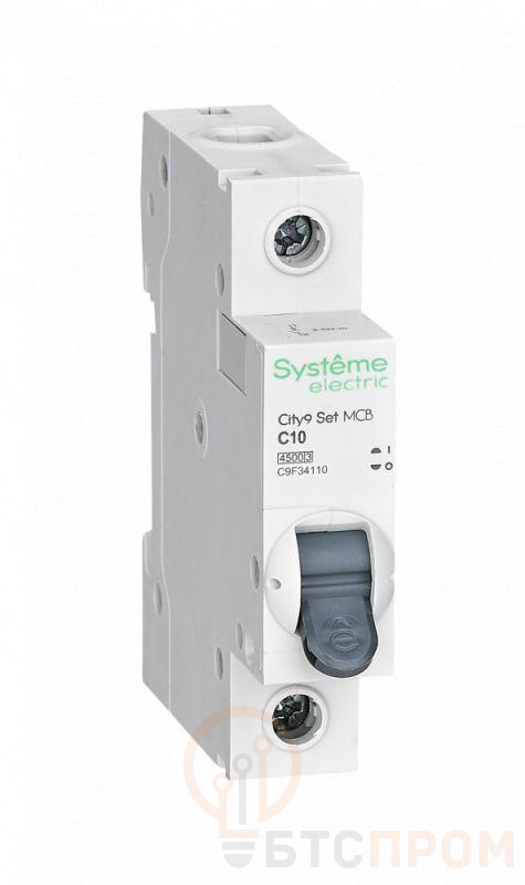 Автоматический выключатель серии City9 Set Systeme Electric, 1-полюсный, номинальный ток 10 А, характеристика С, Icn = 4.5 кА. Применяется в электрических сетях напряжением 230 В. Предназначен для защиты от перегрузок и токов короткого замыкания. Оснащен механизмом «мгновенной коммутации». Ударопрочный корпус из специального пластика с 6 металлическими заклепками. Безопасные клеммы исключают попадание кабелей в заклеммное пространство.