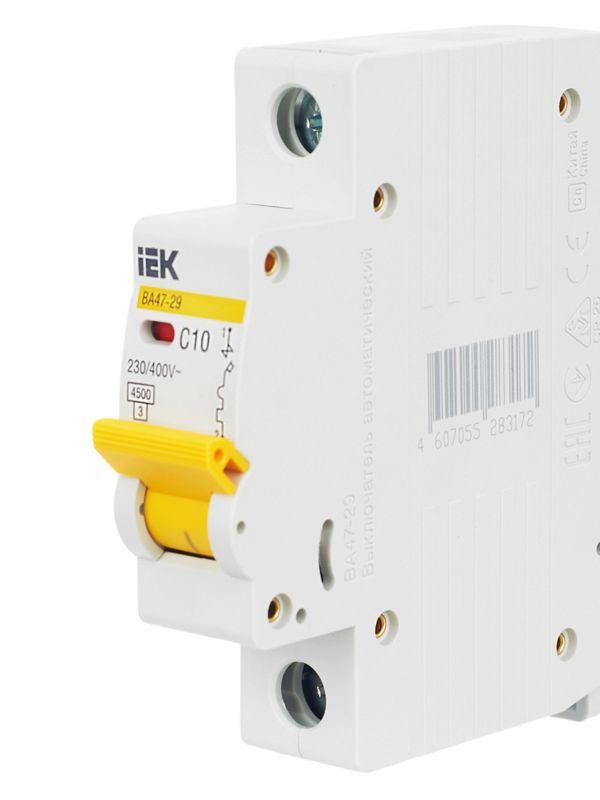 Выключатель автоматический модульный 1п C 10А 4.5кА ВА47-29 KARAT IEK MVA20-1-010-C фото в каталоге от BTSprom.by