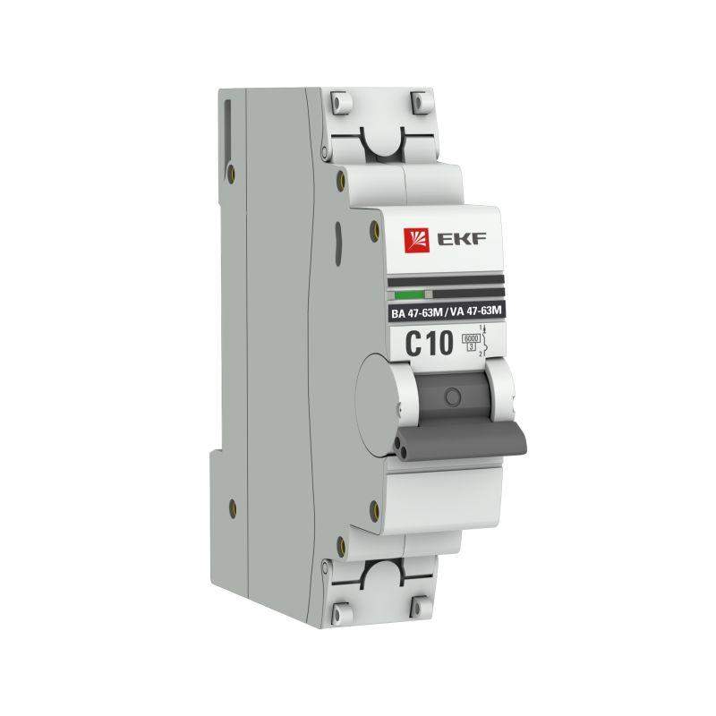 Выключатель автоматический модульный 1п C 10А 6кА ВА 47-63M электромагнит. расцеп. PROxima EKF mcb4763m-6-1-10C-pro