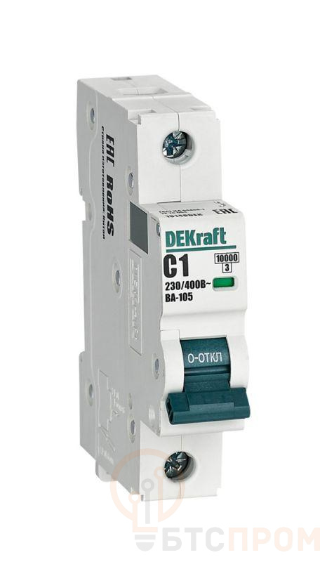 Автоматический выключатель серии ВА-105 Dekraft; 1P; ном. ток 1 А; характеристика C; откл. способность 10 кА; ширина модуля 18мм. Аппараты имеют механизм мгновенной коммутации, 6 монолитных заклепок, которые повышают прочность корпуса. Боковые каналы охлаждения повышают стабильность работы при высоких температурах окружающей среды. Есть возможность установки дополнительных аксессуаров с левой стороны устройства. Аппарат на 100% совместим с корпусами и оболочками Dekraft и Systeme Electric.