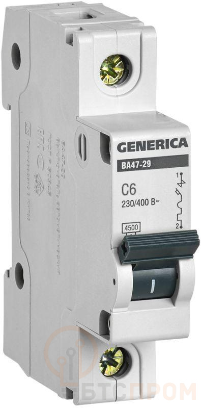 –Выключатель автоматический модульный 1п C 6А 4.5кА ВА47-29 GENERICA MVA25-1-006-C