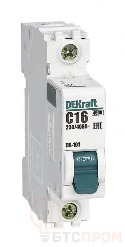 Автоматический выключатель серии ВА-101 Dekraft; 1P; номинальный ток 16 А; характеристика D; отключающая способность 4,5 кА. 5 монолитных заклепок повышают прочность корпуса аппарата. Сплошная лицевая панель обеспечивает безопасность эксплуатации аппарата. Боковые каналы охлаждения повышают стабильность работы при высоких температурах окружающей среды. Есть возможность установки дополнительных аксессуаров с левой стороны устройства. Аппарат на 100% совместим с корпусами Dekraft и Systeme Electric.
