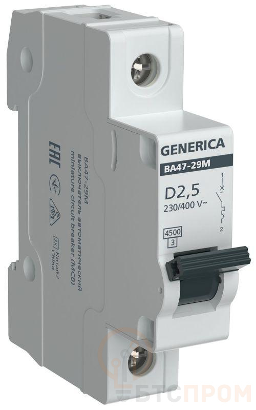–Выключатель автоматический модульный 1п D 2.5А 4.5кА ВА47-29М GENERICA MVA21-1-D25-D-G