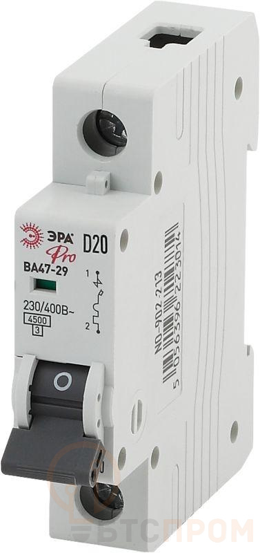 Выключатель автоматический модульный 1п D 20А 4.5кА ВА47-29 PRO NO-902-213 ЭРА Б0048803