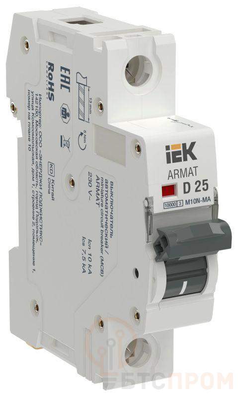 Выключатель автоматический модульный 1п D 25А M10N-MA без тепл. расцеп. ARMAT IEK AR-M10N-MA-1-D025 фото в каталоге от BTSprom.by