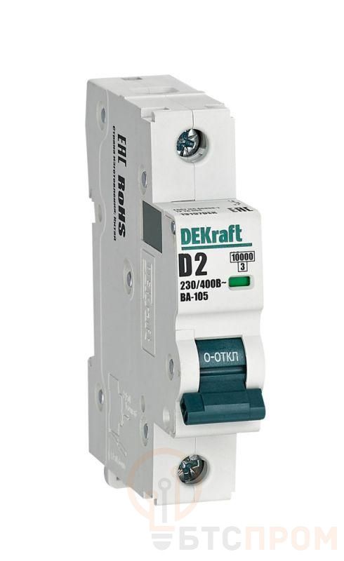 Автоматический выключатель серии ВА-105 Dekraft; 1P; ном. ток 2 А; характеристика D; откл. способность 10 кА; ширина модуля 18мм. Аппараты имеют механизм мгновенной коммутации, 6 монолитных заклепок, которые повышают прочность корпуса. Боковые каналы охлаждения повышают стабильность работы при высоких температурах окружающей среды. Есть возможность установки дополнительных аксессуаров с левой стороны устройства. Аппарат на 100% совместим с корпусами и оболочками Dekraft и Systeme Electric.