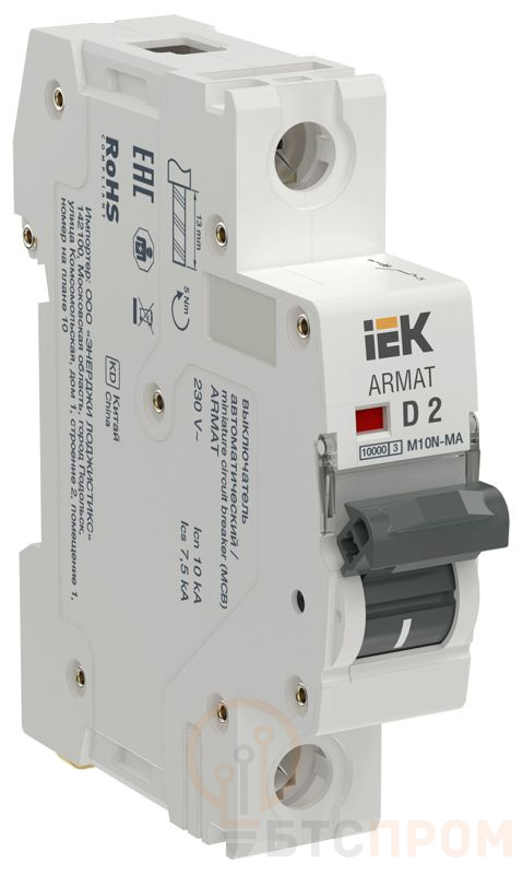 Выключатель автоматический модульный 1п D 2А M10N-MA без тепл. расцеп. ARMAT IEK AR-M10N-MA-1-D002 фото в каталоге от BTSprom.by
