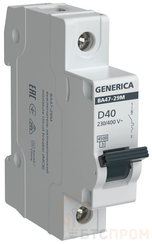 Выключатель автоматический модульный 1п D 40А 4.5кА ВА47-29М GENERICA MVA21-1-040-D-G