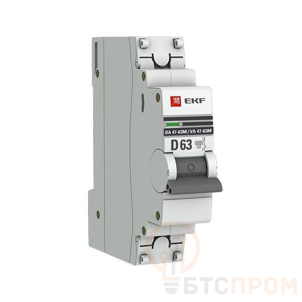 Выключатель автоматический модульный 1п D 63А 6кА ВА 47-63M с одним магнит. расцеп. EKF mcb4763m-6-1-63D-pro