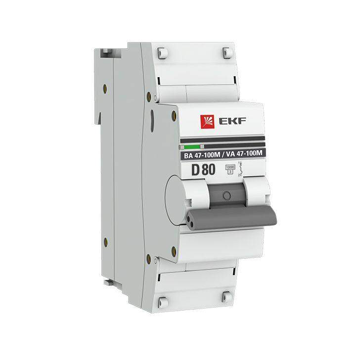 Выключатель автоматический модульный 1п D 80А 10кА ВА 47-100M электромагнит. расцеп. PROxima EKF mcb47100m-1-80D-pro