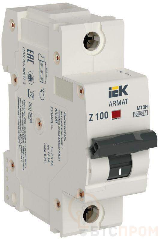 Выключатель автоматический модульный 1п Z 100А M10H ARMAT IEK AR-M10H-1-Z100 фото в каталоге от BTSprom.by