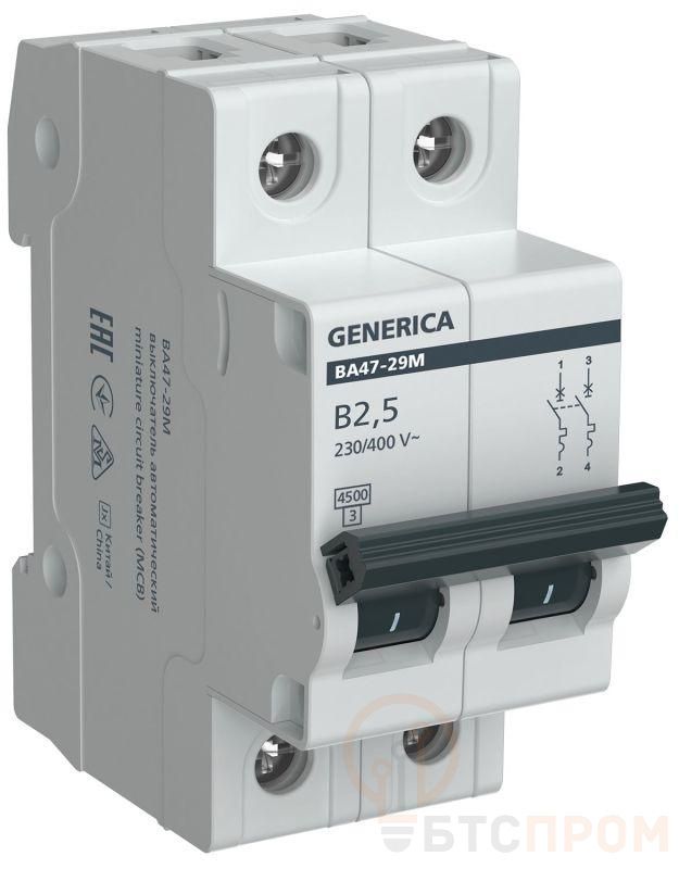 –Выключатель автоматический модульный 2п B 2.5А 4.5кА ВА47-29М GENERICA MVA21-2-D25-B-G