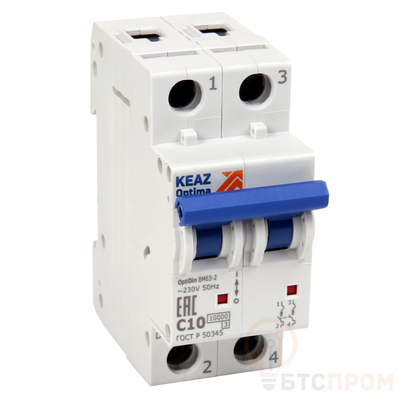 Выключатель автоматический модульный 2п B 25А 10кА OptiDin BM63-2NB25-10-УХЛ3 КЭАЗ 262672 фото в каталоге от BTSprom.by