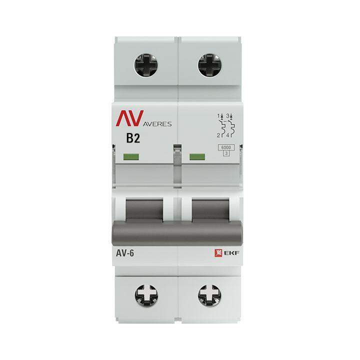 –Выключатель автоматический модульный 2п B 2А 6кА AV-6 AVERES EKF mcb6-2-02B-av